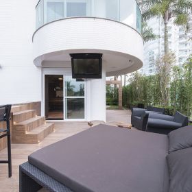 Queriam algo ousado, tons escuros e uma vibe de pub para receber os amigos e tomar bons vinhos com o foco no living e na área gourmet.