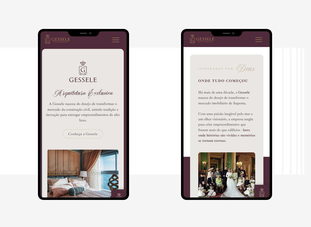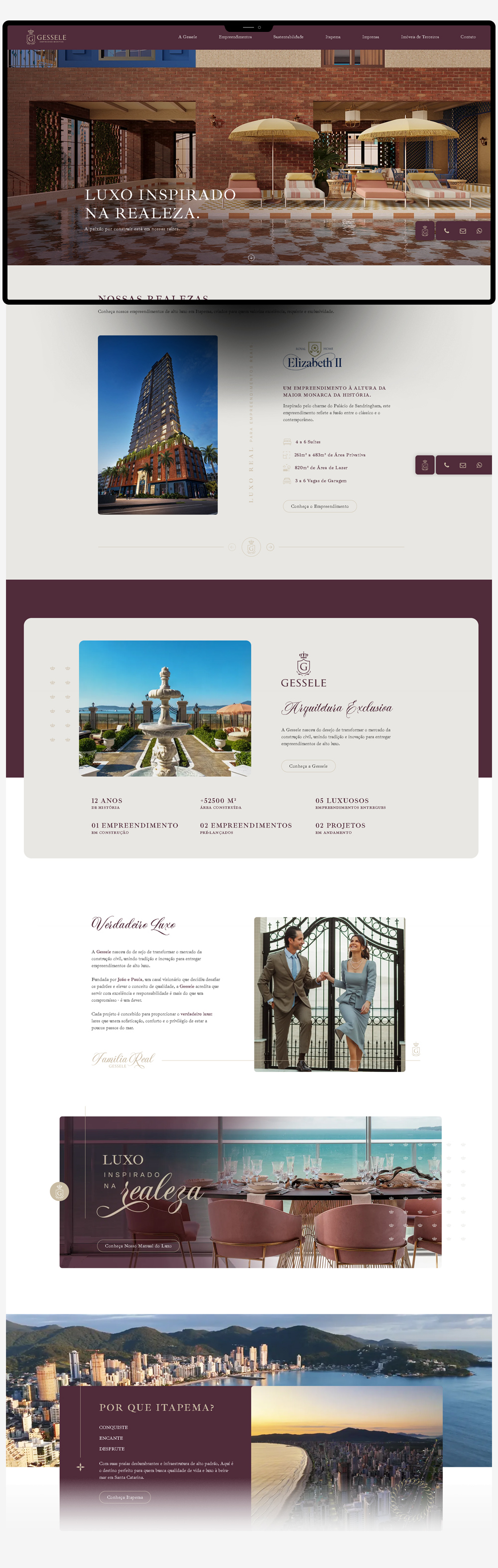 A QUAX desenvolveu o novo website da Gessele Empreendimentos, construtora que se destaca em Itapema (SC) por seus empreendimentos de alto luxo, inspirados na realeza e na tradição clássica, mas com uma leitura contemporânea e sofisticada.