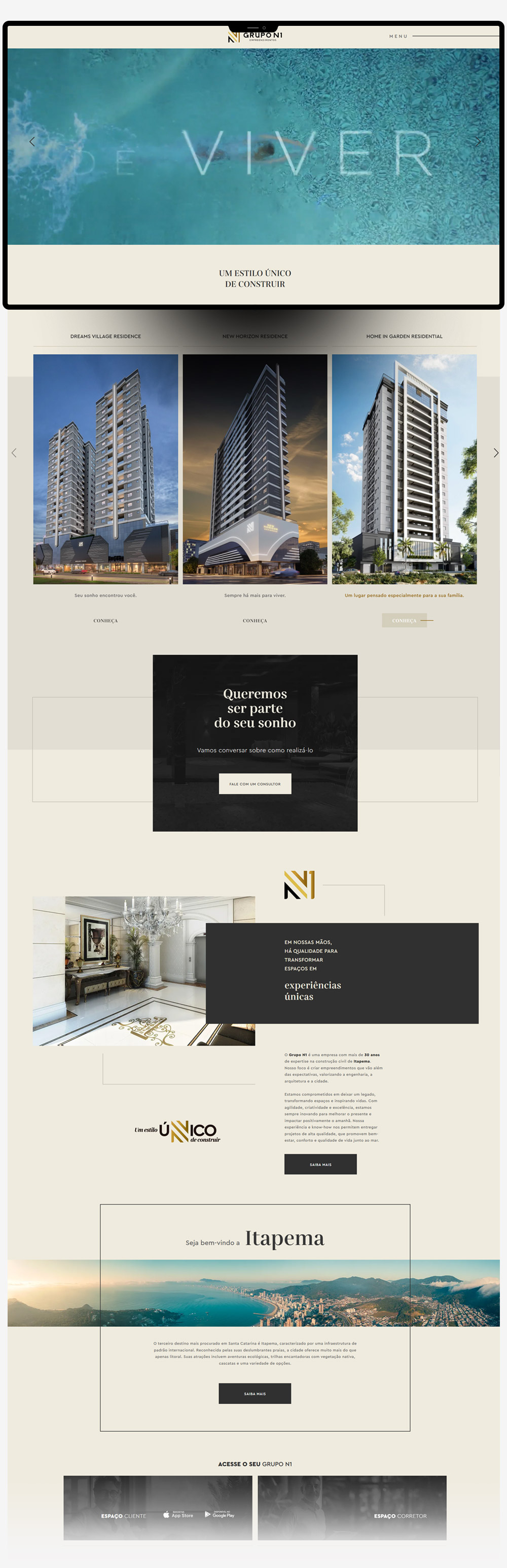A QUAX desenvolveu o novo website do Grupo N1 Construtora, empresa com mais de 30 anos de expertise na construção civil de Itapema. Reconhecida pela solidez e pelo estilo único de construir, a N1 tem como propósito transformar espaços, inspirar vidas e valorizar a cidade onde atua.